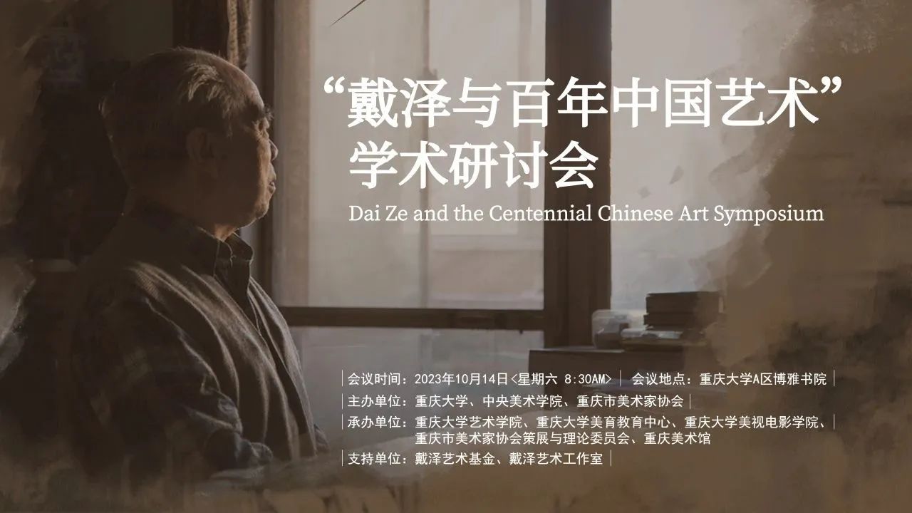 2023年10月14日,由重庆大学、中央美术学院、重庆市美术家协会主办,重庆大学艺术学院、重庆大学美育教育中心、重庆大学美视电影学院、重庆市美术家协会策展与理论委员会、重庆美术馆承办,戴泽艺术基金、戴泽艺术工作室支持的“戴泽与百年中国艺术”学术研讨会在重庆大学博雅书院召开。来自中央美术学院、北京大学、中国美术家协会、中国人民大学、首都师范大学、北京服装学院、四川大学、西安交通大学、重庆大学、西南大学、四川美术学院、西安美术学院等全国重要院校的知名学者与会,围绕戴泽艺术创作研究、戴泽与百年中国美育研究、戴泽与百年中国艺术观念嬗变研究、戴泽笔下的川渝题材绘画研究等议题展开了深入研讨。据悉,此次研讨会是戴泽先生逝世后国内举办的第一场全国性学术研讨会,研讨会的召开对于深切缅怀戴泽先生,积极践行习近平总书记给中央美术学院老教授重要回信精神,推动中华美育精神和美育思想研究迈向新高度等都具有重要意义。