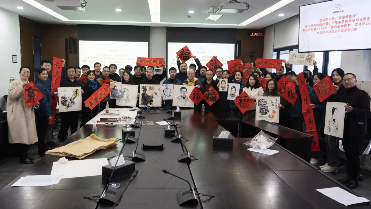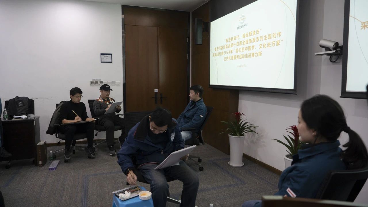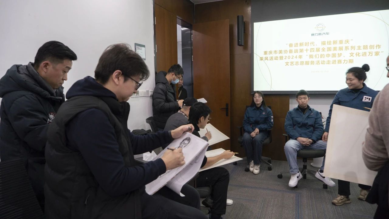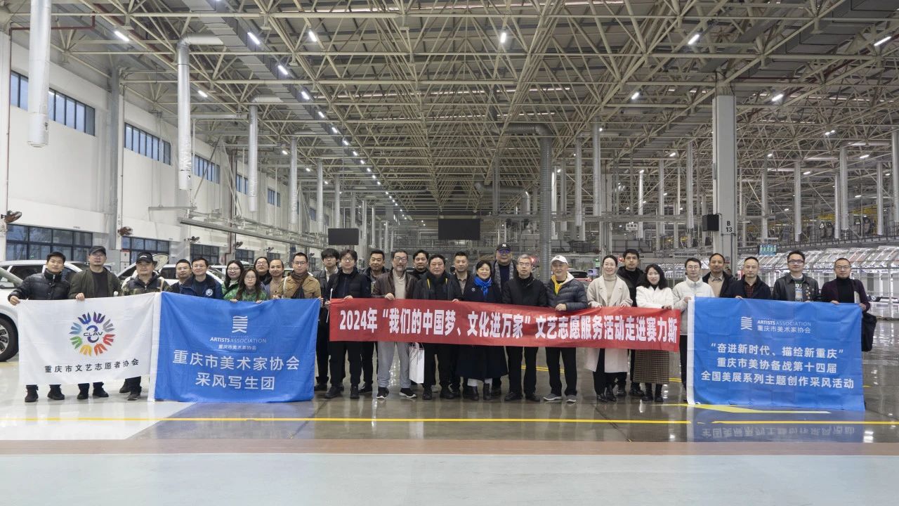 2024年1月15日上午,由重庆市文学艺术界联合会指导,重庆市美术家协会、重庆市文艺志愿者协会共同主办,重庆半岛美术艺术中心、中国美术家协会重庆创作中心承办的“奋进新时代,描绘新重庆——重庆市美协备战第十四届全国美展系列主题创作采风活动暨2024年‘我们的中国梦、文化进万家’文艺志愿服务活动”在赛力斯两江智慧工厂举行。