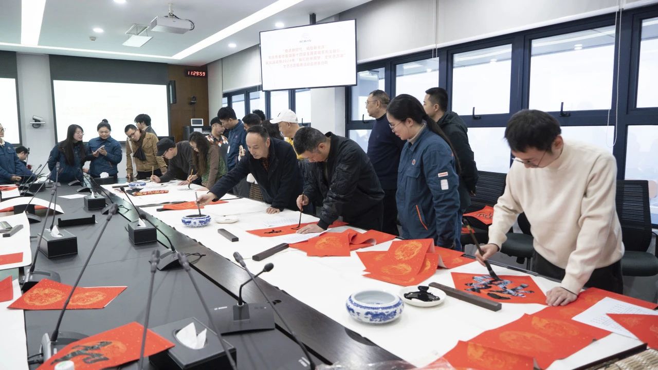 艺术家们为一线建设者们书写春联、创作国画,同时为劳模代表画速写、漫画,送去新年的祝福,共同营造喜迎新春的浓厚氛围。